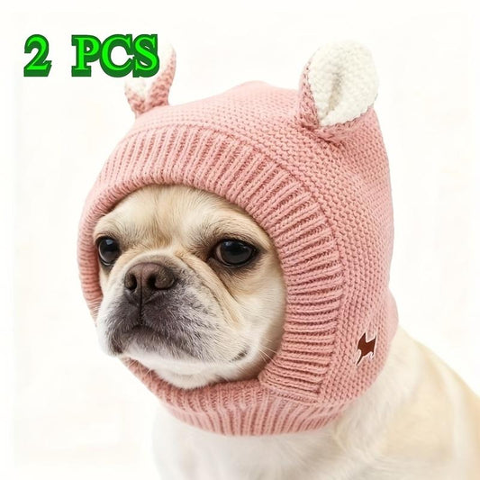 2Pcs Dog Winter Warm Knit Hat, Suitable for Large Medium Small Breeds, Noise-Blocking Pet Cap with Ears, Dog Winter Hat, Pet Headwear Decoration, Dog Owners, Durable Pet Wear, Soft Knitted Material, Stylish Pet Accessory, Cold Weather Protection